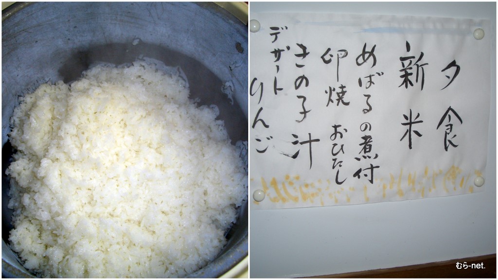 新米、愛の魚の煮つけ、自家用卵、野菜、天然きの汁、早生ふじりんご。自然からの豊かな生産物を今ある実顕地から産み出されたてを、食卓に出されることは最高の喜びと贅沢極まりないです。
