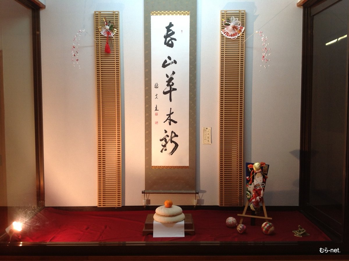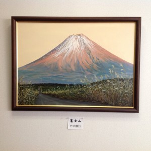 文化展は春山草木新の書を「春はすぐそこ、山には草や木々に新しい命が芽生え、僕たちも心新たにを表現しています」絵、正月に竹内さんの富士山を飾ります。