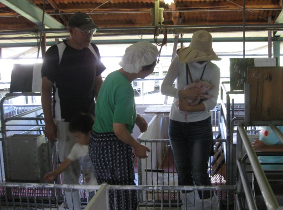 母豚に野菜をあげたり、赤ちゃん豚をだっこさせてもらったり。