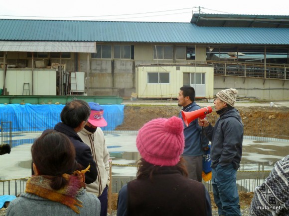参観はバイオガス発電の工事現場からはじまり卓海さんの「昨年の参観から実際あの話は今どうなってるんだというところを、形になっているあたりを見て貰って又話題にして貰って次が描けたらいいかなと思ってます」でスタートしました。