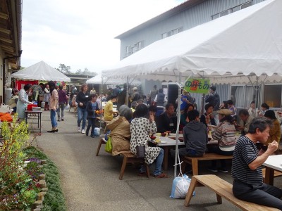 朝から準備したおにぎりや豚汁、焼きそばや焼肉のお店、関東各実顕地のお店も開店して、中部男研のメンバーによる餅つきも始まり、各地から持ち寄ったデザートやコーヒーのお店と、和気あいあい、美味しい野外食で、テーマの「みんな仲良し大家族」の雰囲気が会場いっぱいに溢れるひと時でした。