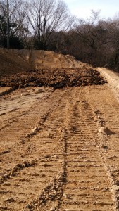 - 豊里から遠藤庄一さん。生活館前の元桃園を造成中、丸田夫妻のハウスが建つ予定