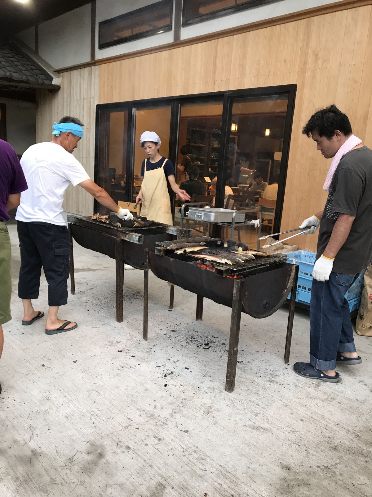 愛和館前の庭で焼いてもらって、お皿を受け取って、愛和館へ。美味しかったです!