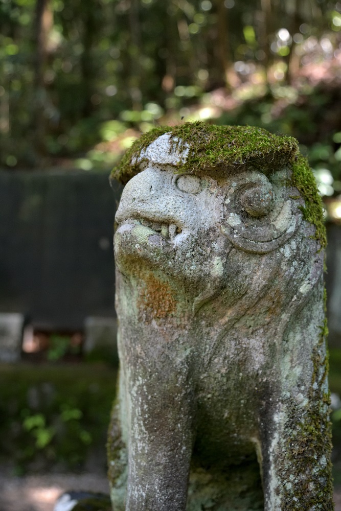 「これだいじです」って、 解剖学の先生が言ってました。 こまいぬ、 頭に苔を、かむって、 お顔もユニーク。