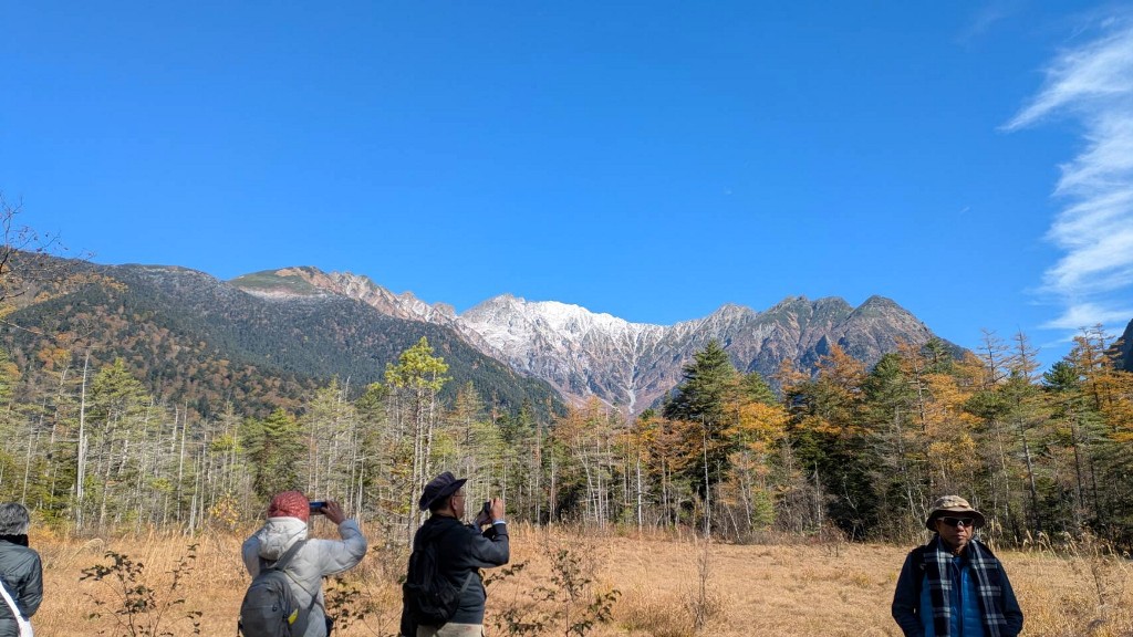 - ロケーション最高!奥の頂きは…奥穂高…。 3190m登れば、人生が代わる場所らしいです。