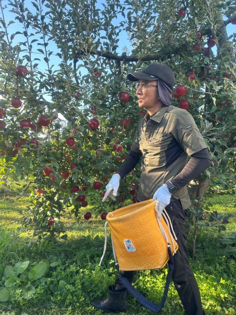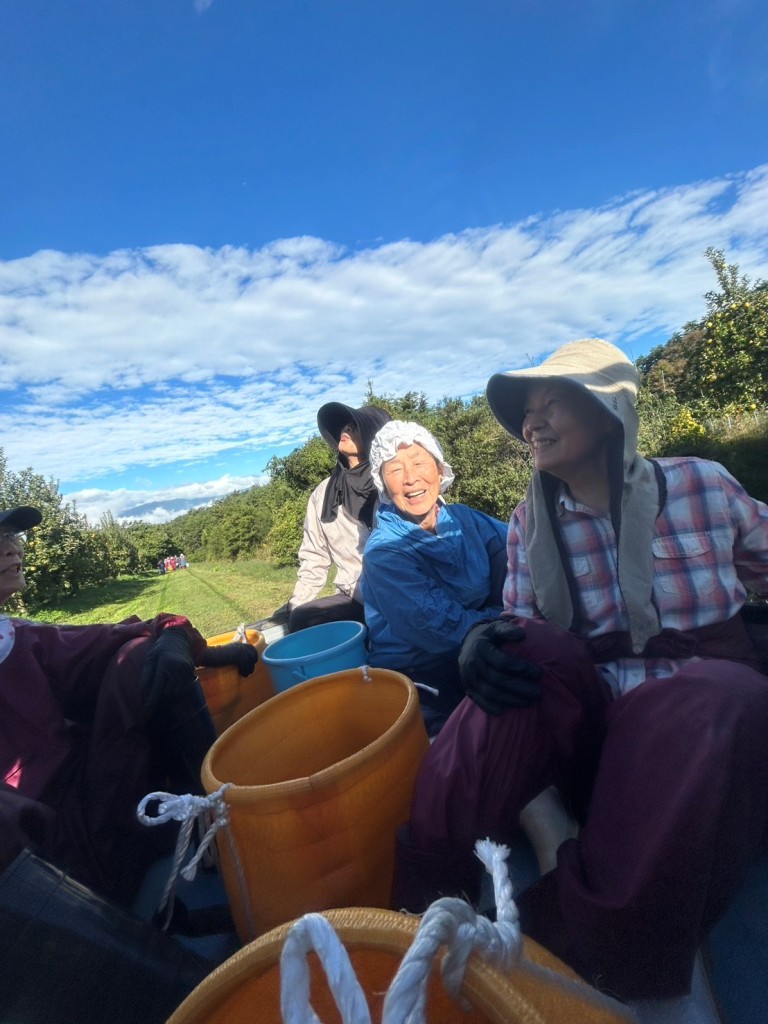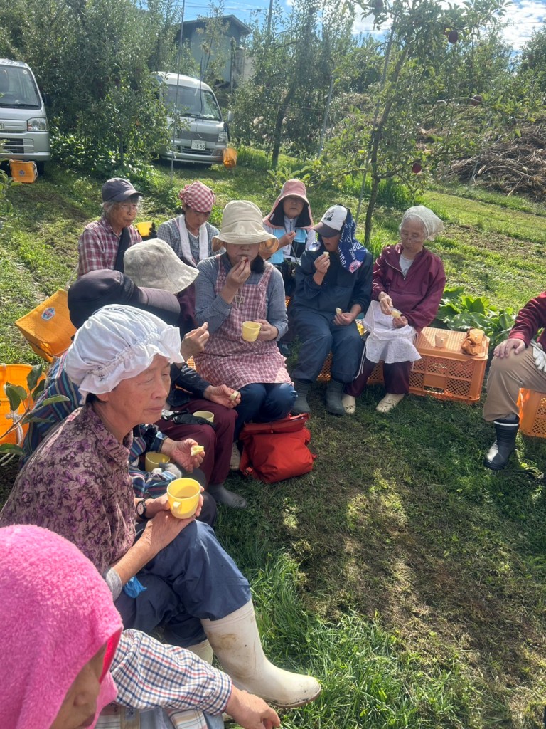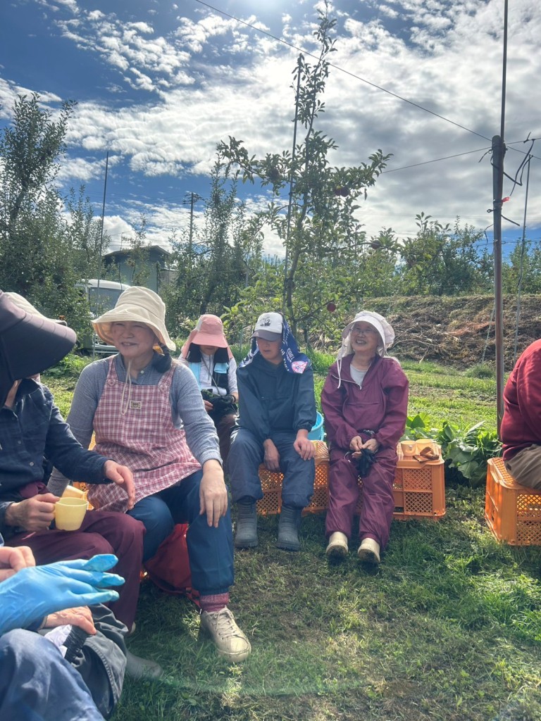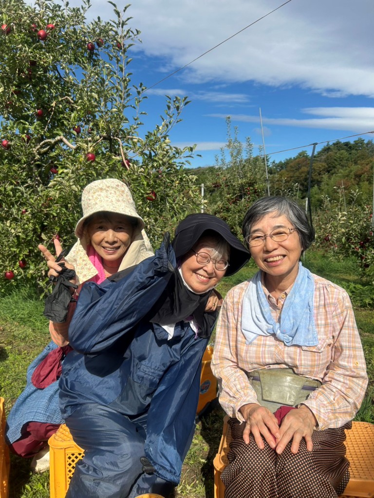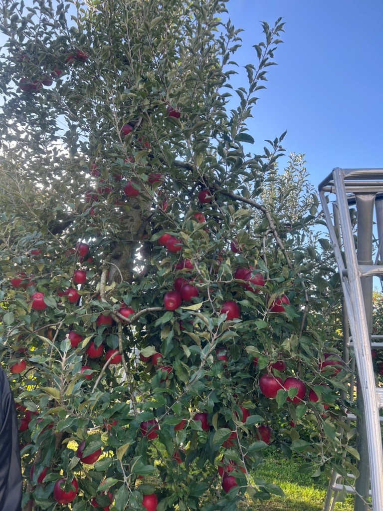 空が綺麗! りんごの赤が映える❣️ 只今ちょっと休憩 りんごが美味しい❣️