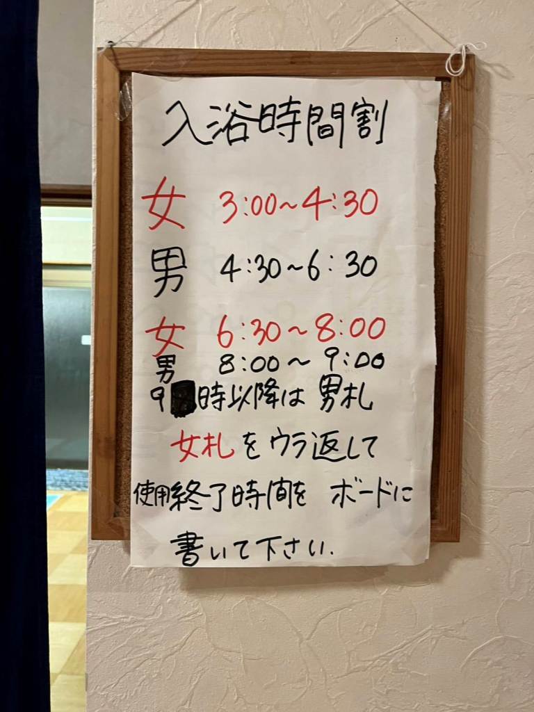 男女時間制に変更するときは,1日おきで,これまで通り男,女別風呂がいいと言ってた人の事が気にかかりました.時間制にして待つのが嫌です!男の人の入った風呂には入れません!と言ってた人達ですが,なんだかこの人達の考えは変わったみたいです.特に不満の声は,聞こえてこないのです。