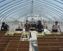 4月23日から春日山の福田律子さんが交流に来て、育苗ハウスの苗の管理をやっています。